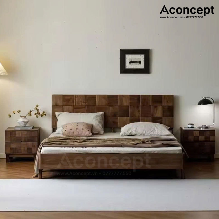 - Chất liệu: Gỗ Aconcept, phủ sơn, đầu giường được bọc Da Microfiber cao cấp bền bỉ và an toàn cho sức khỏe.