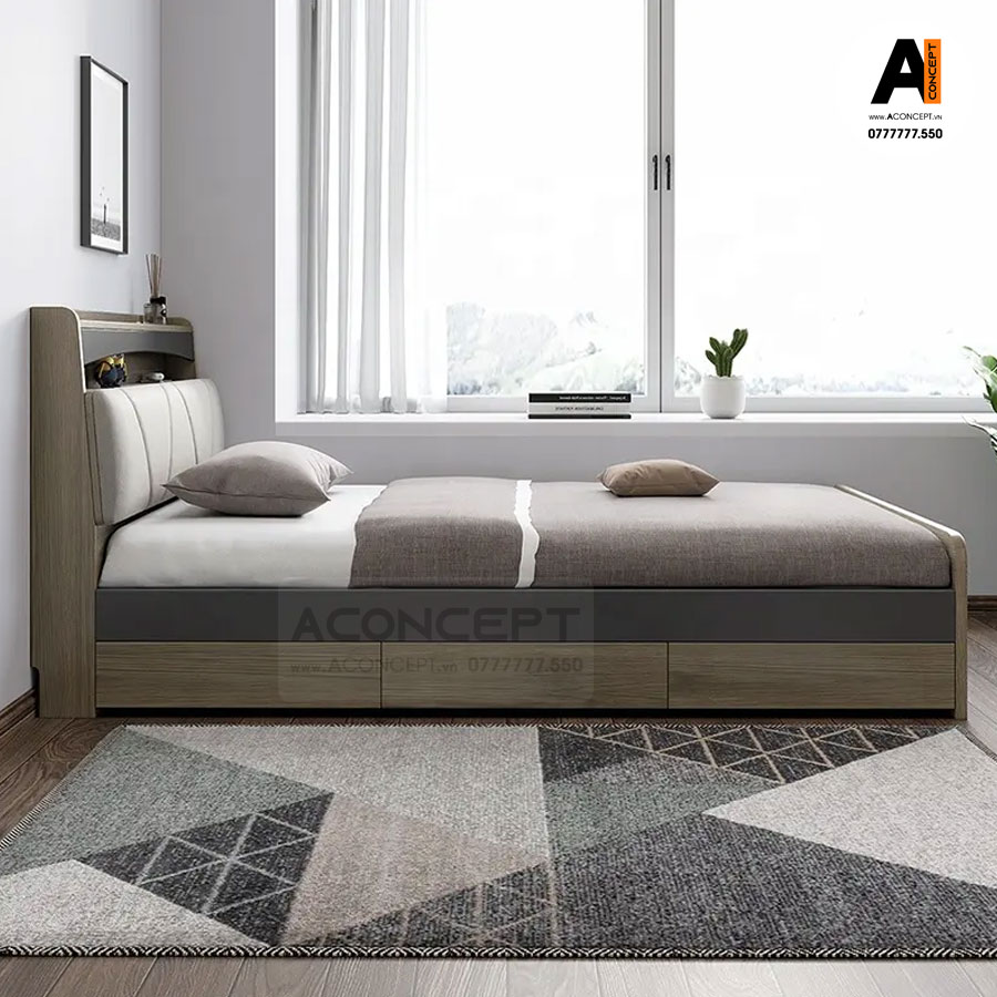 + Giường cao cấp được làm bằng Gỗ Aconcept phủ Melamine chống nước cao cấp nhập khẩu Thái Lan được phủ Melamine chống thấm đạt tiêu chuẩn chất lượng xuất khẩu, giúp sản phẩm không chỉ đẹp hơn về mỹ quan mà còn mang lại độ bền chắc lâu dài. Bên mặt được phủ bóng chống hút ẩm, dễ lau chùi và hạn chế trầy xước, độ chịu nhiệt, chịu nước cao. Sản phẩm qua xử lý chống cong vênh, mối mọt bằng công nghệ của Đức, thân thiện và an toàn cho sức khỏe gia đình và môi trường.