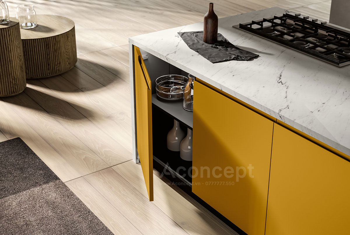 + Nội thất các ngăn tủ bếp bên trong được bộ phận thiết kế của Aconcept thiết kế thông minh và thông thoáng rất hợp lý. Đặc biệt các hộc kéo tiện dụng chứa các vật dụng nhỏ gọn và các phụ kiện khi sử dụng bếp, tùy theo không gian Bếp bộ phận thiết kế Aconcept sẽ có những giải pháp tối ưu cho ngôi nhà Bạn.
